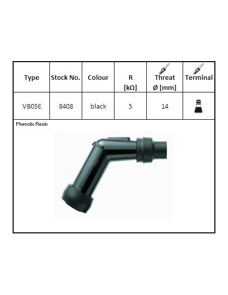 Attacco candela NGK VB05E, colore nero, resistenza 5 KΩ, diametro interno 14mm, terminale candela grande.