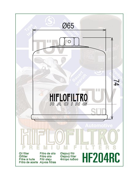 Filtro olio racing Hiflo HF204RC per moto Honda, Kawasaki, Triumph e Yamaha modello basso.