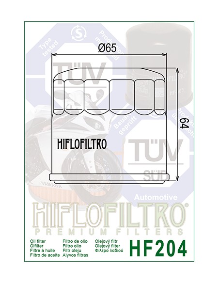 Filtro olio Hiflo HF204 per moto Honda, Kawasaki, Triumph e Yamaha modello basso.