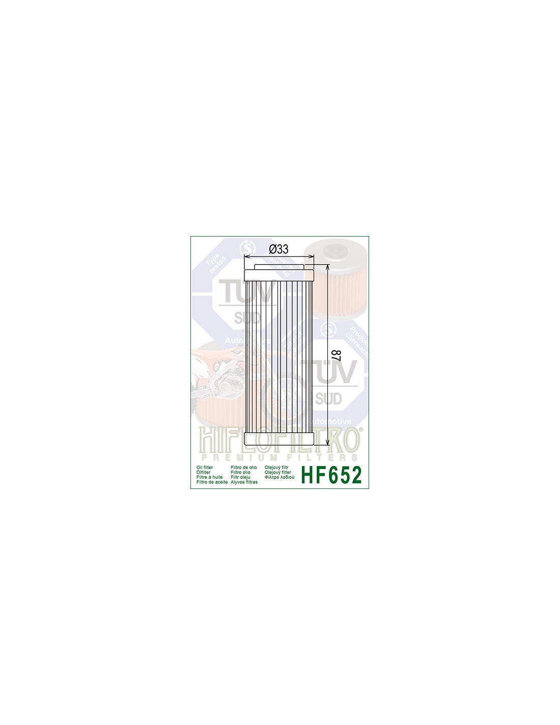 Filtro olio Hiflo HF652 per KTM EXC-F 250/350/450/500/530 e Husqvarna FX/FE 250/350/450.