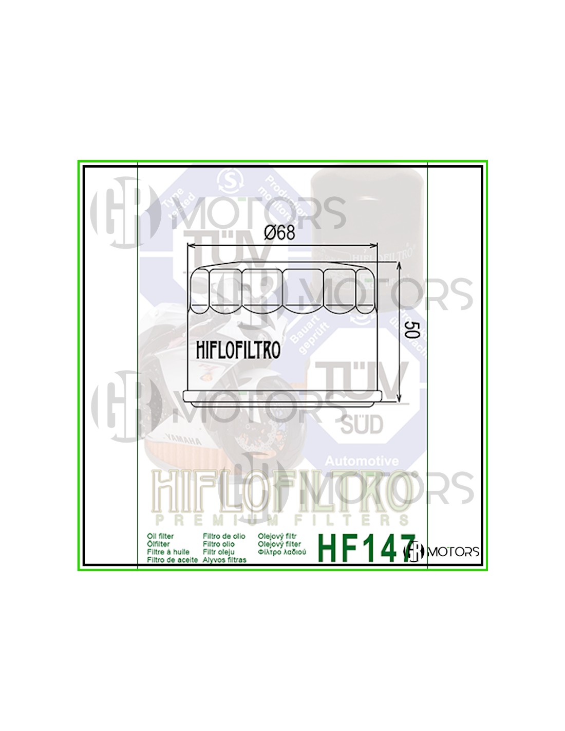 Filtro olio Hiflo HF147 per Yamaha XP 500 T-Max dal 2001 al 2011, Yamaha XP 530 T-Max dal 2012 al 2016, Kymco Xciting 500 dal 2011 e Kymco MyRoad 700 dal 2011.