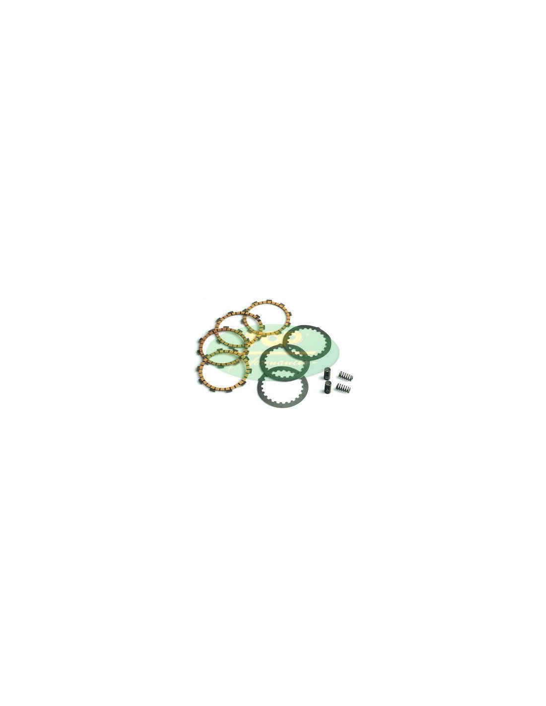 Kit frizione TOP composto da dischi in cellulosa/kevlar, dischi in metallo e molle rinforzate per moto 50 2T con motore Minarelli AM 3-4-5 e 6 1° e 2° serie.