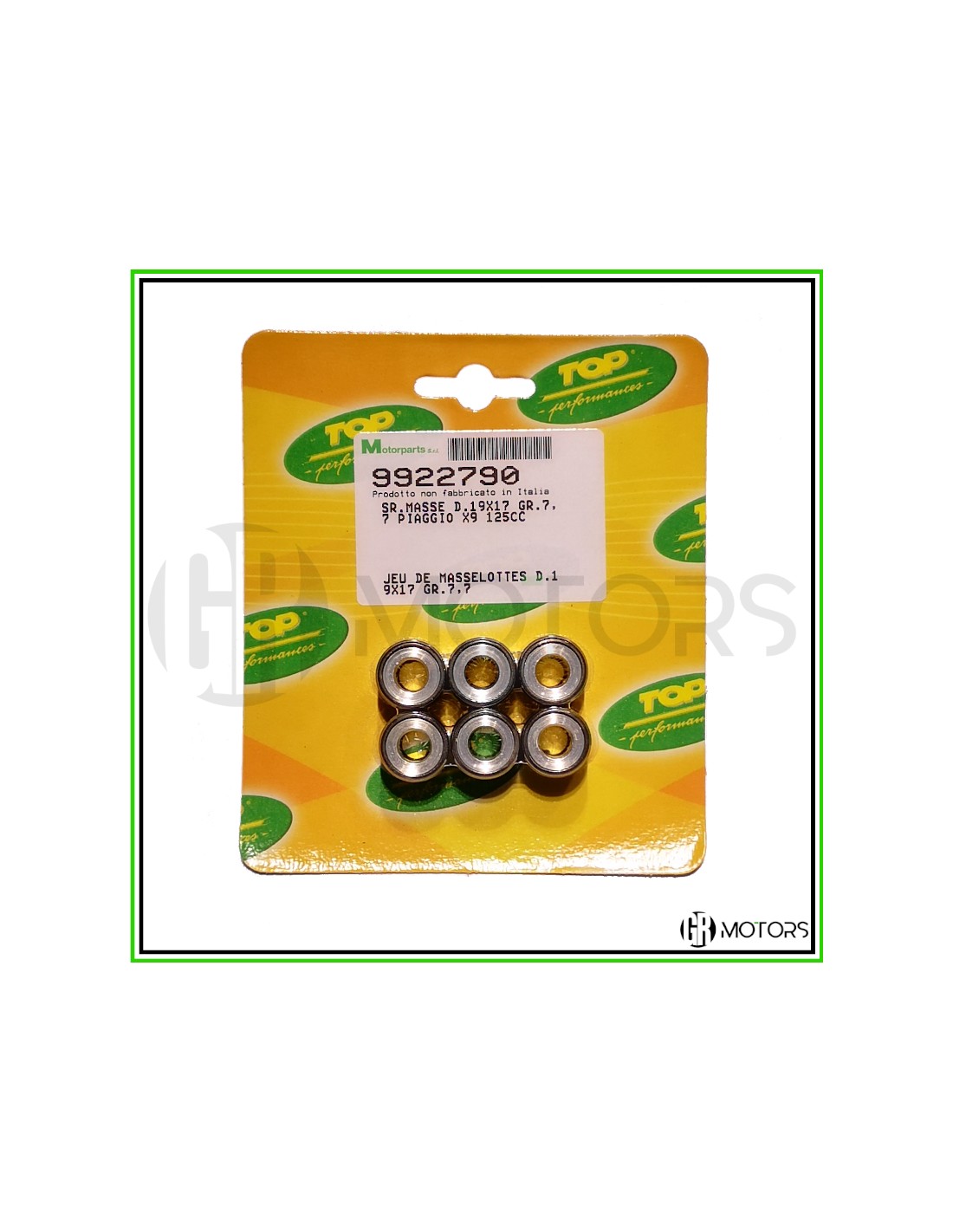 Kit 6 rulli TOP 19x17 grammi 7,7 per veicoli Piaggio 125.