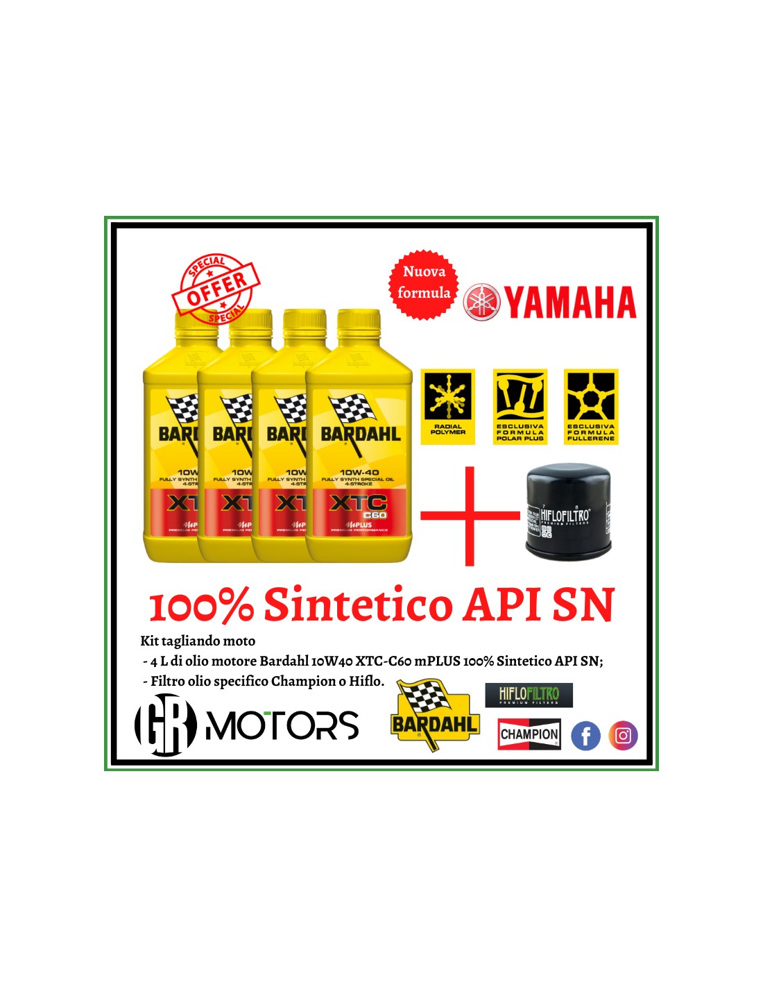 - MCO Tailored Chemistry - sviluppato su misura per applicazioni motociclistiche e addizionato con Bardahl Polar Plus + Fullerene C60