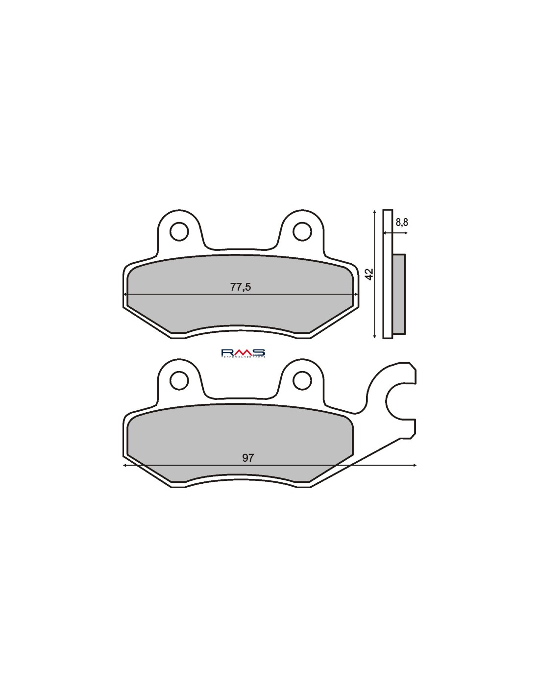 Pastiglie freno posteriore organiche RMS per Kymco Agility R16 + 125/150/200 tutti i modelli dal 2014.
