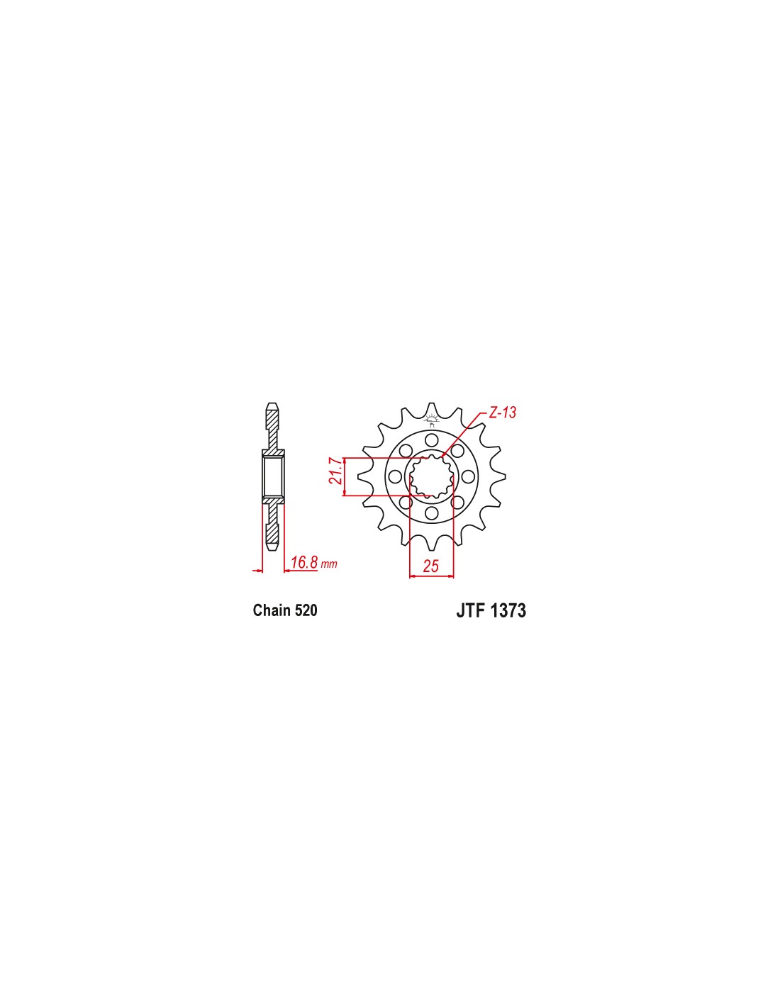 Pignone JT JTF1373.16 passo 520 denti 16 per Honda NC 700 S/X dal 2012 al 2013 (Dentatura originale), Honda NC700 D Integra dal 2012 al 2013 (Dentatura originale), Voge Valico 500 DS/DSX dal 2020 (Un dente in più dell'originale), Voge Valico 525 DSX dal 2023 (Un dente in più dell'originale) e Voge Brivido 500 R dal 2020 (Un dente in più dell'originale).